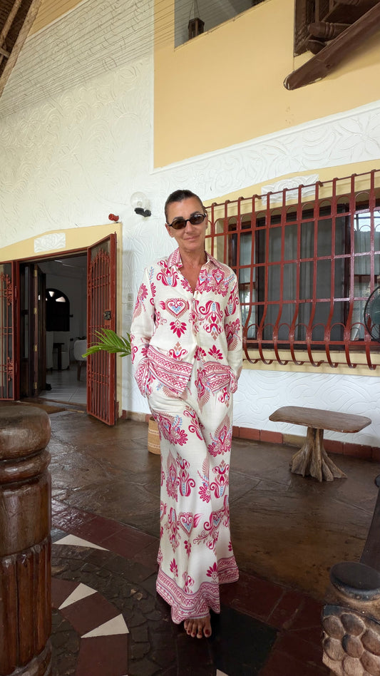 Pantaloni panna a palazzo con stampa arabic ay