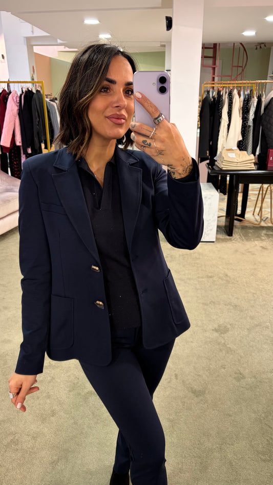 Blazer slim blu notte punto milano 2 bottoni pe26