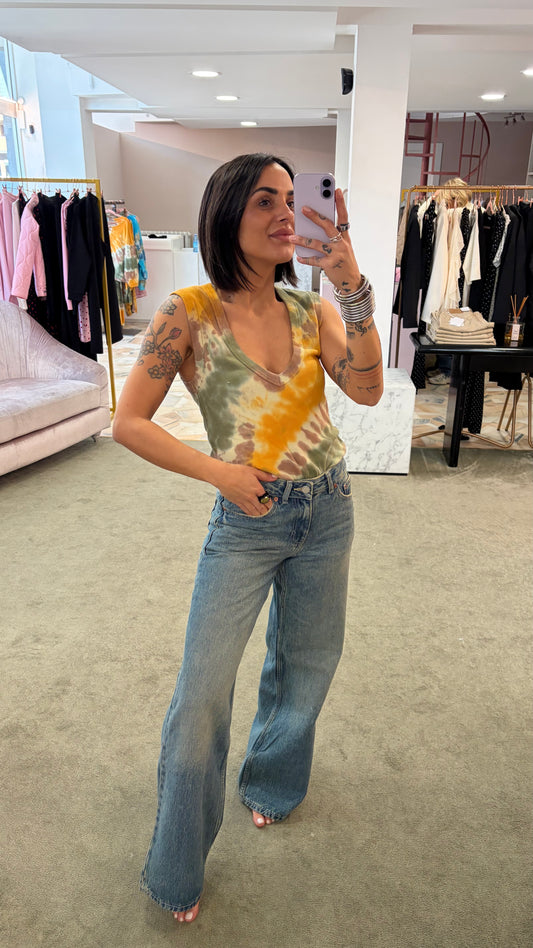 Felpa gialla verde tie-dye scollo a v Don't@Me