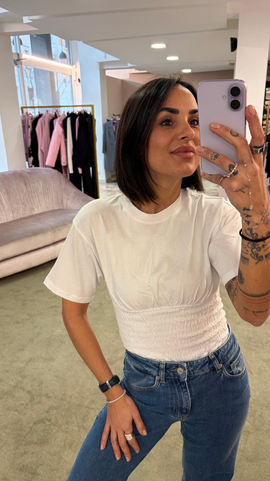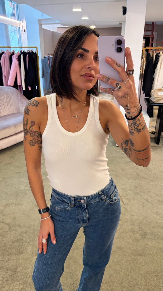 Canotta bianca a costine scollo tondo jx