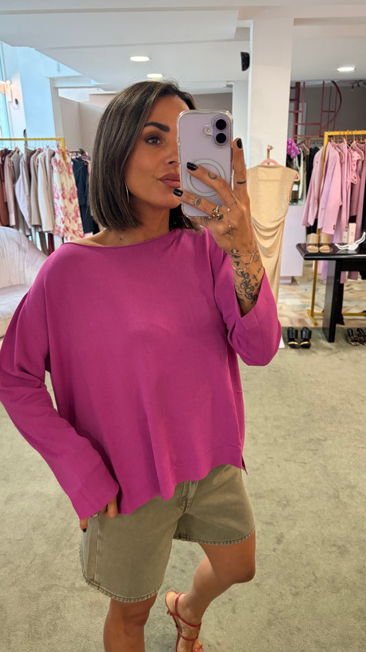 Maglia rosa ciclamino scollo a barca fy