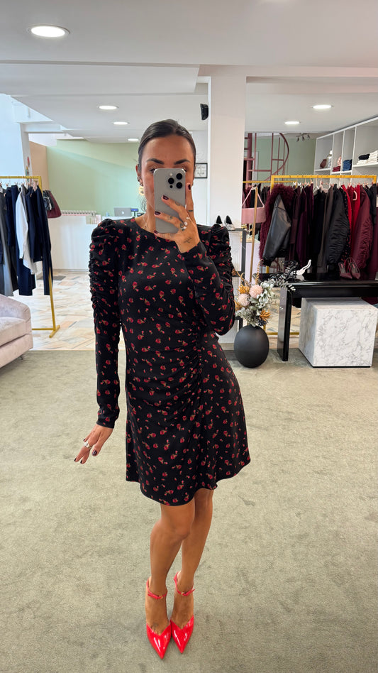 Abito dora corto MAR DE MARGARITAS nero con rose rosse