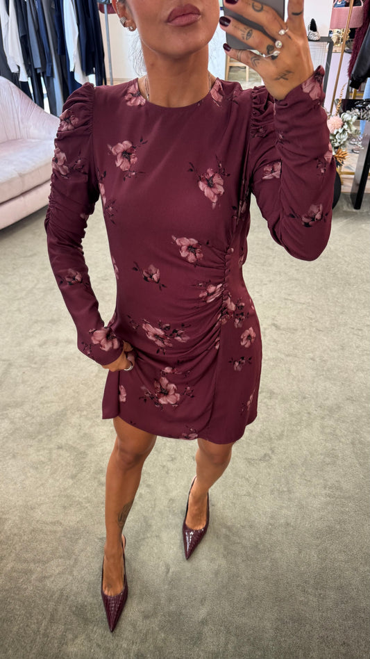 Abito dora corto MAR DE MARGARITAS bordeaux con fiori