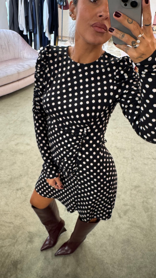 Abito dora corto MAR DE MARGARITAS nero a pois