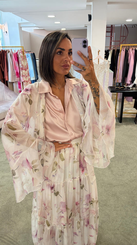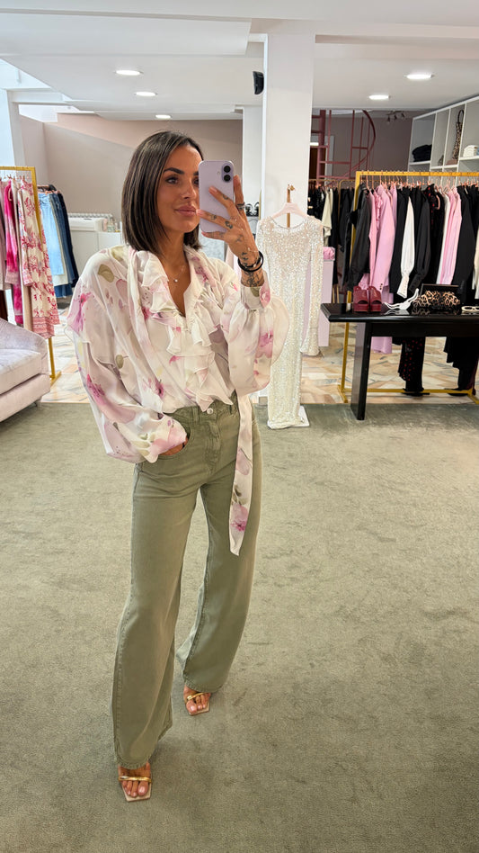 Camicia fiori con sciarpina e volant Actualee