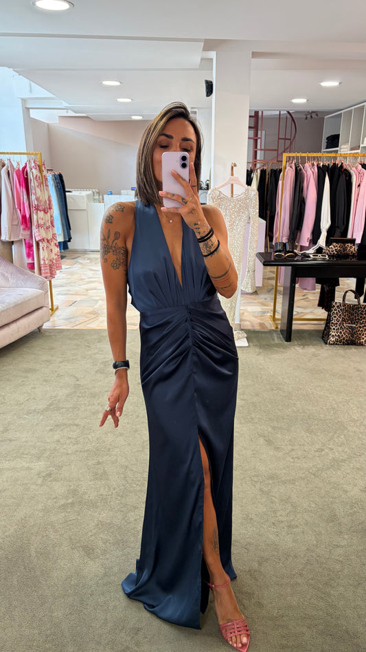 Abito lungo blu notte satin Actualee