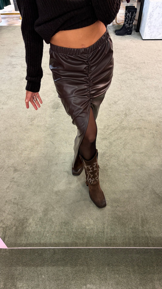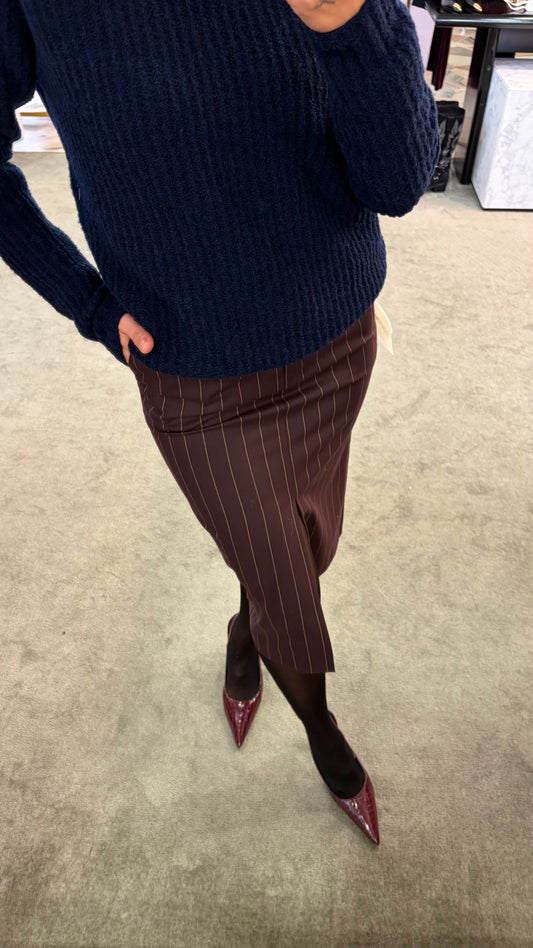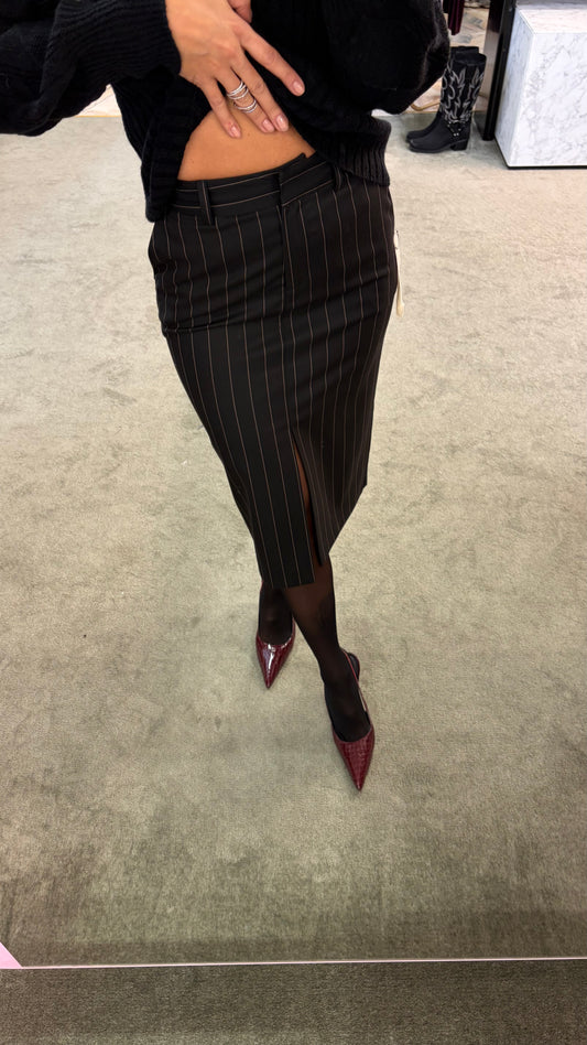 Gonna longuette MAR DE MARGARITAS marrone gessata con spacco