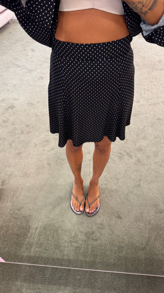 Gonna corta kate MAR DE MARGARITAS nera a pois piccoli bianchi