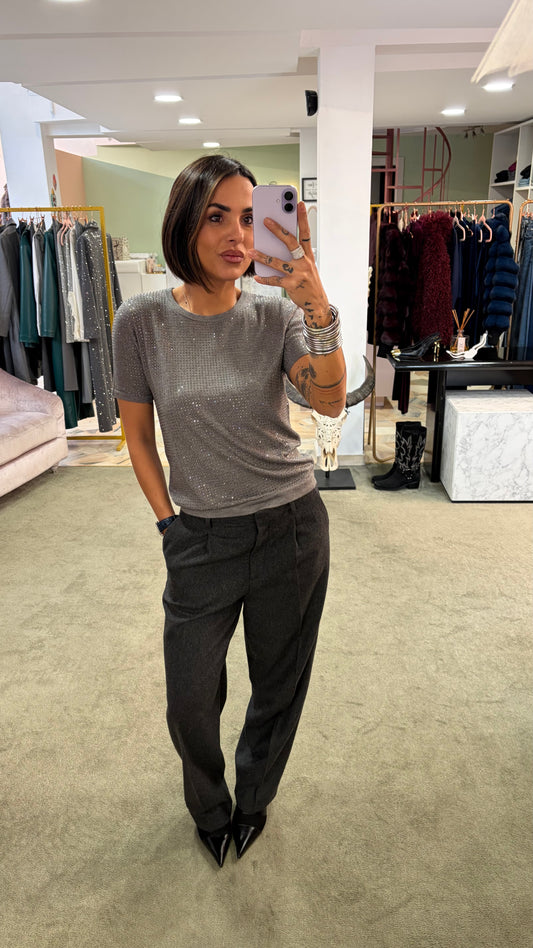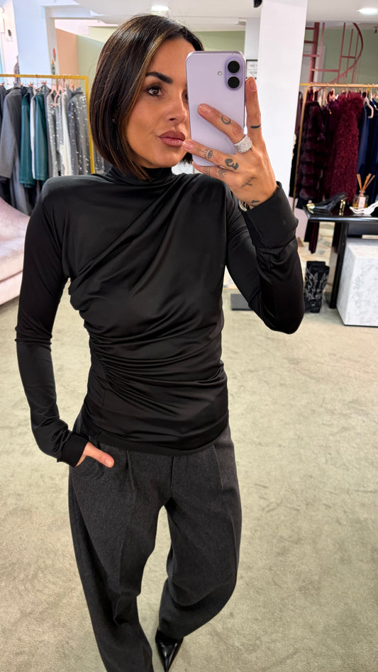 Maglia beige pietra con arricciatura sottogiacca manica lunga