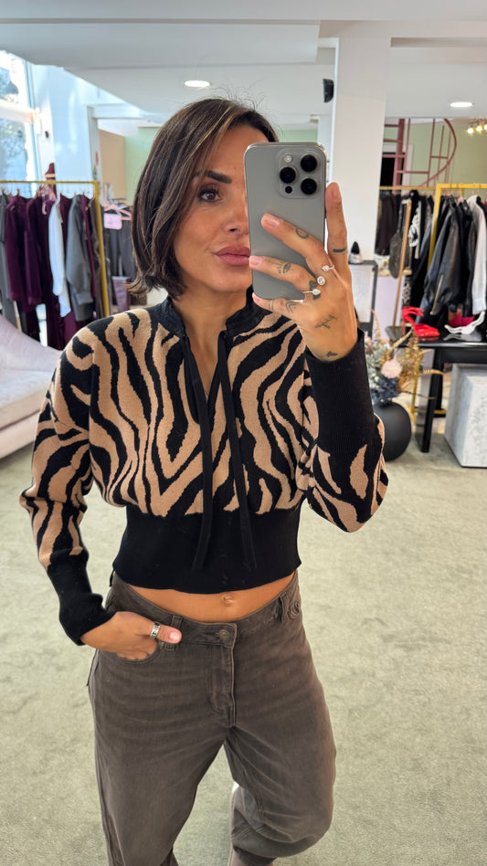 Maglione crop zebrato marrone e nero lh