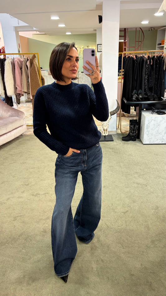 Maglione girocollo blu navy a costine Irish