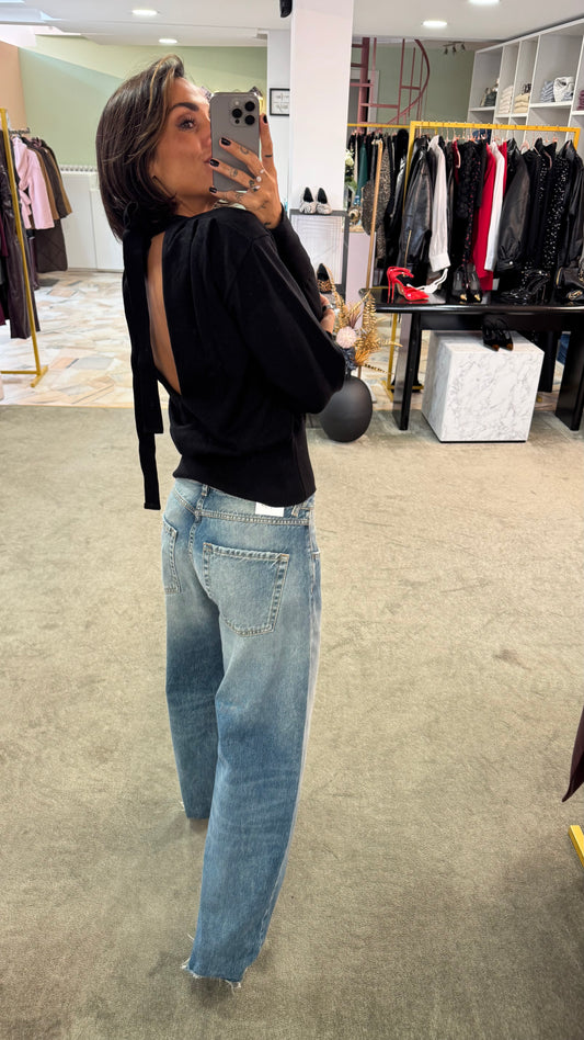 Maglione nero scollo a v dietro con fiocco lh