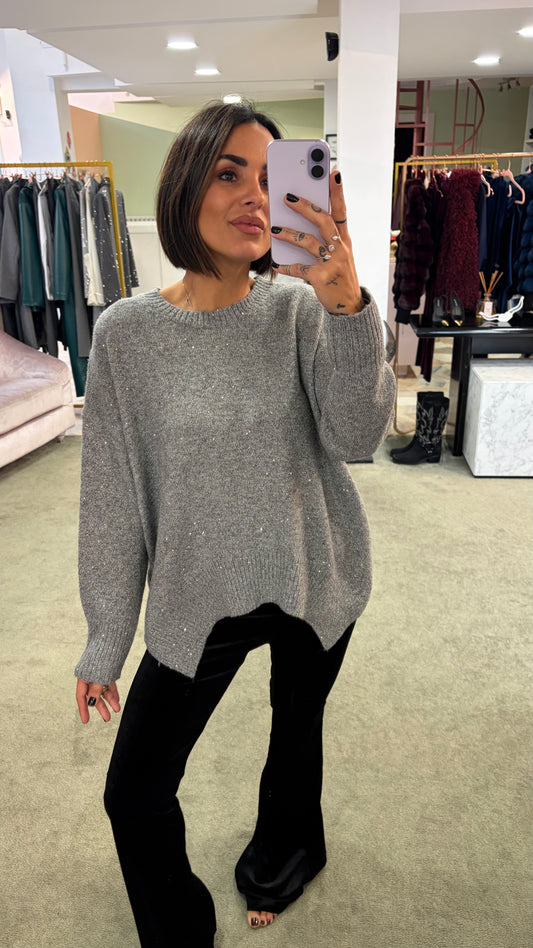 Maglione over grigio con micropaillettes bj
