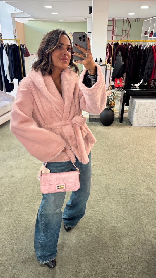 In offertaPelliccia eco rosa luxury con cappuccio ys