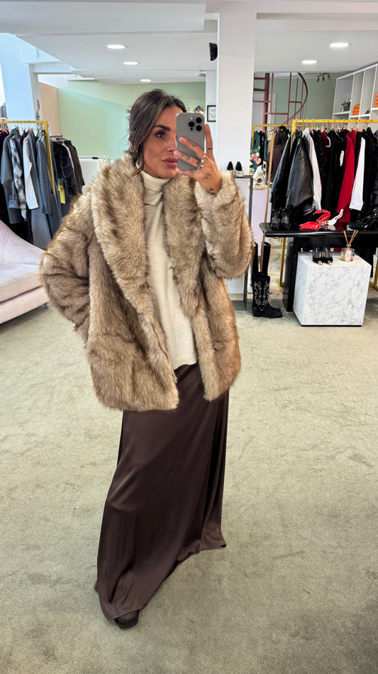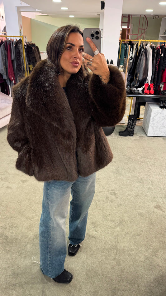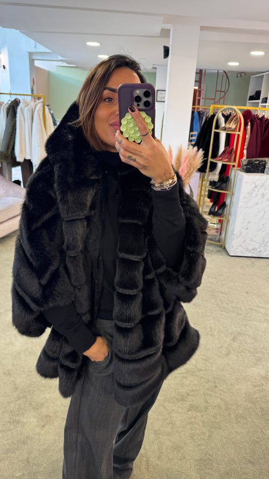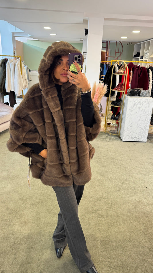 Cappa pelliccia eco marrone moro revesibile con cappuccio