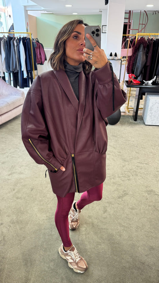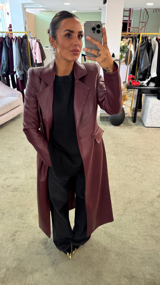EsauritoCappotto lungo ecopelle bordeaux ks