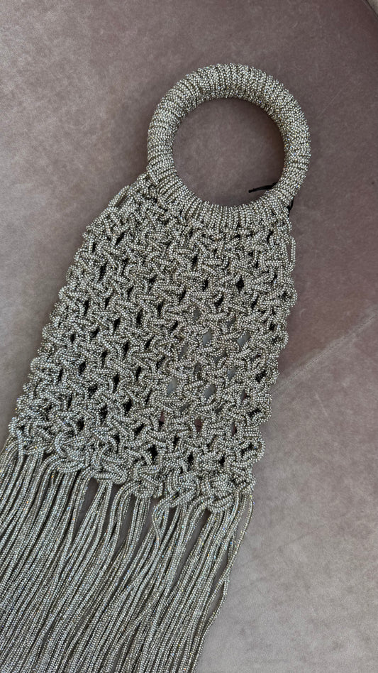 Borsa argento crystal con nodi e frange