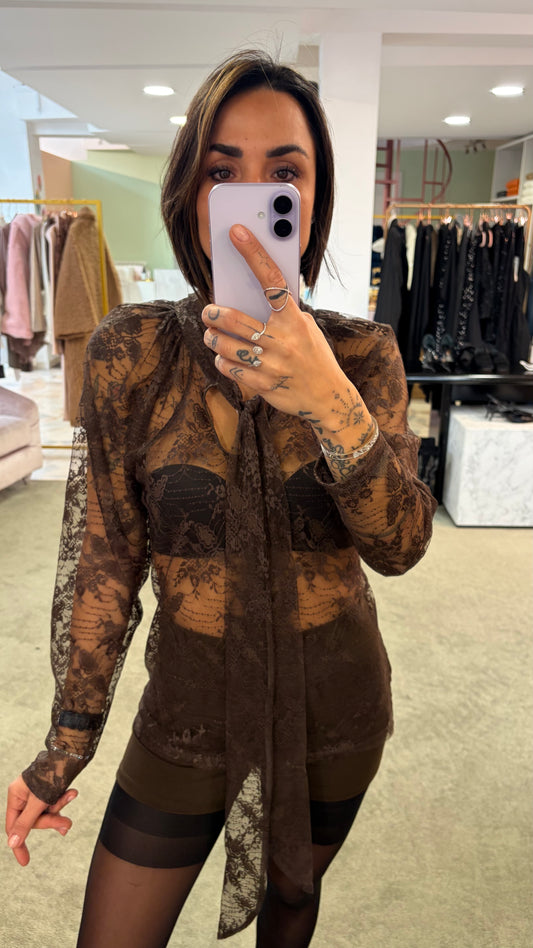 In offertaCamicia marrone in pizzo con fiocco mq