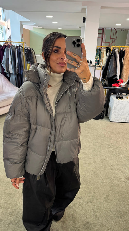 Piumino marrone testa di moro over con cappuccio Hinnominate