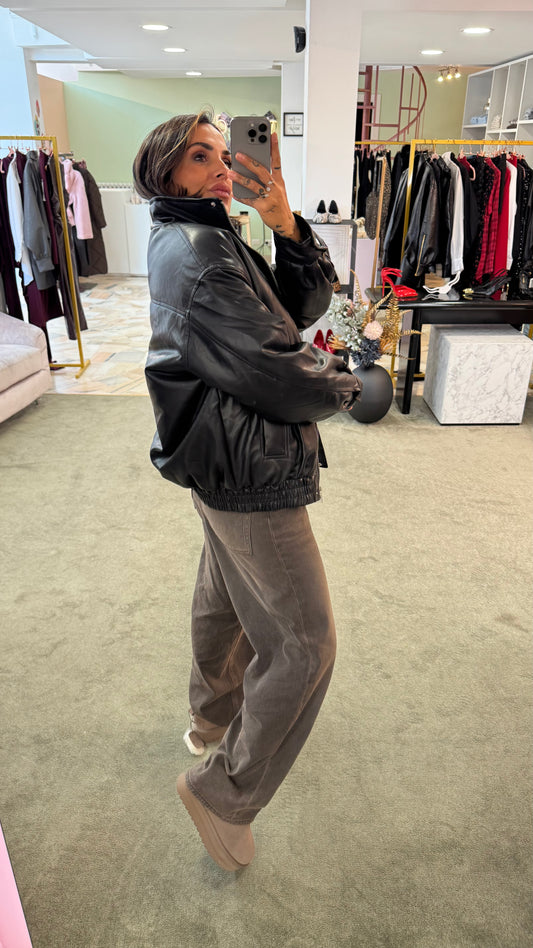 Bomber aviator nero imbottito in ecopelle gl