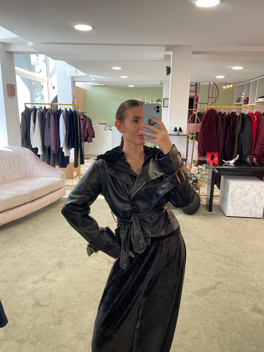 EsauritoTrench mini nero crop in ecopelle gl