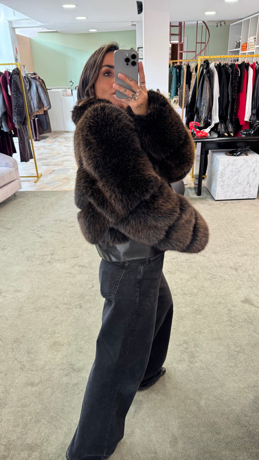 Bomber in eco pelliccia marrone luxury effetto fox un