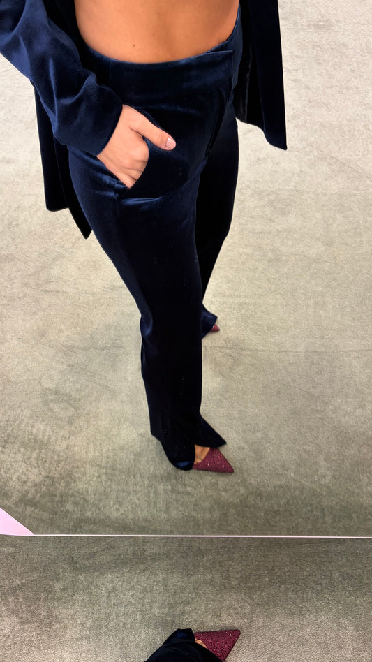 Pantaloni blu notte in velluto con spacco Don't@Me