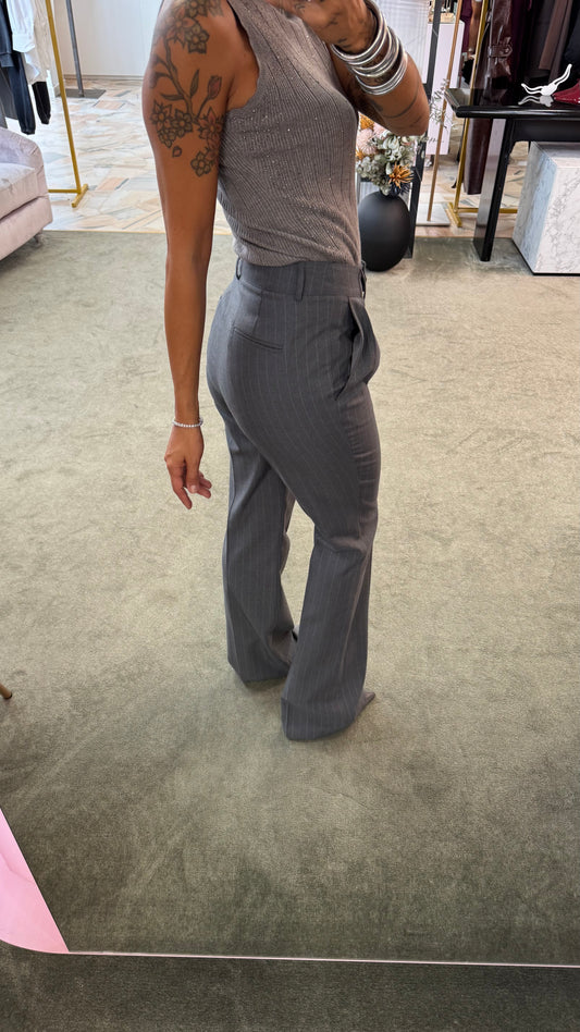 Pantaloni grigio gessati a zampa fr