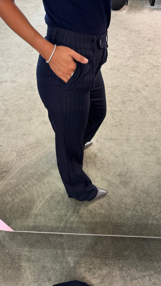 Pantaloni blu gessati a zampa fr