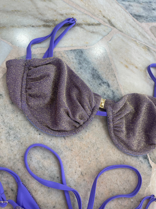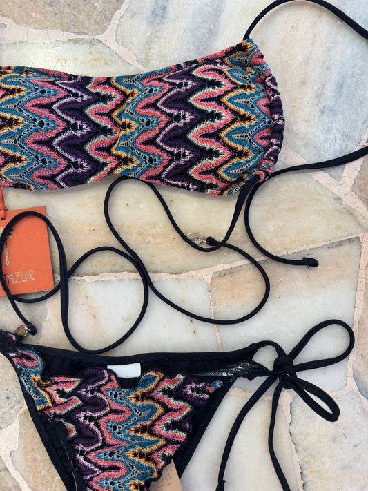 Bikini triangolo in maglia a rete nero lurex Cotazur