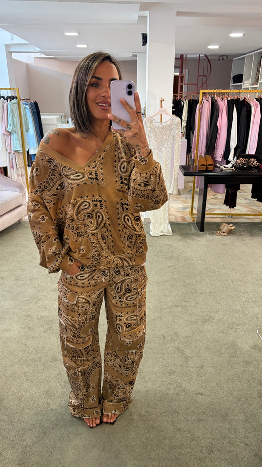 Felpa beige bandana scollo a v Don't@Me