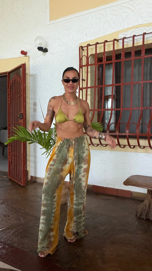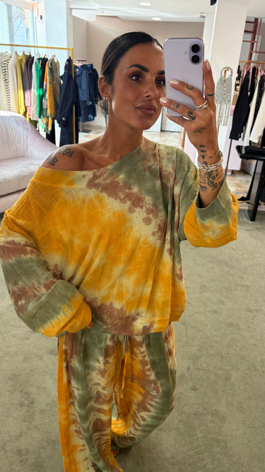 Pantaloni gialli verdi tie-dye in garza Don't@Me