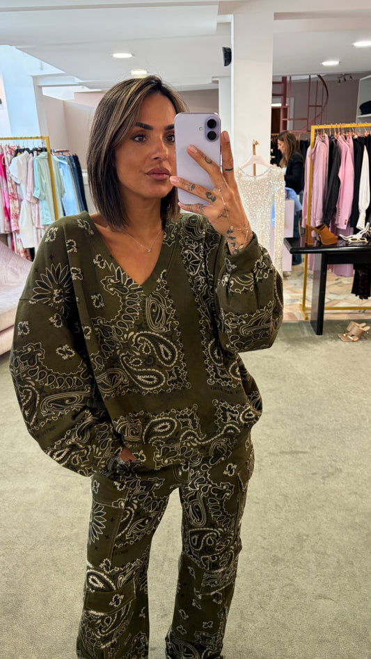 Felpa verde militare bandana scollo a v Don't@Me