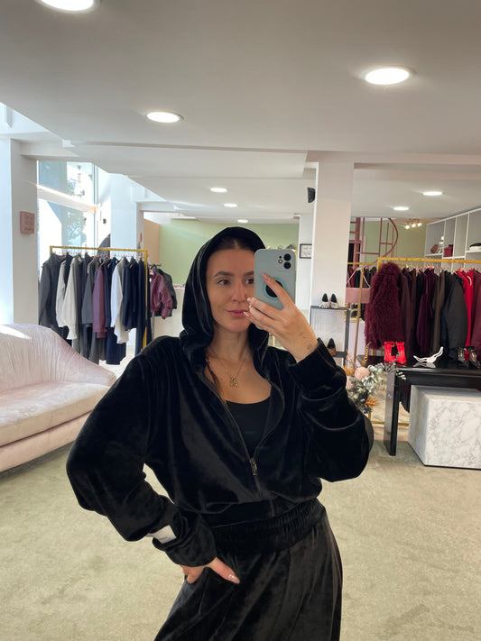 Felpa nera con cappuccio in ciniglia Hinnominate