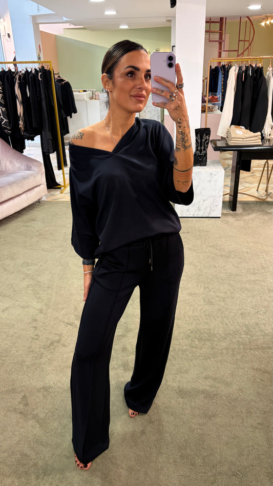 In offertaFelpa nera girocollo in modal sy