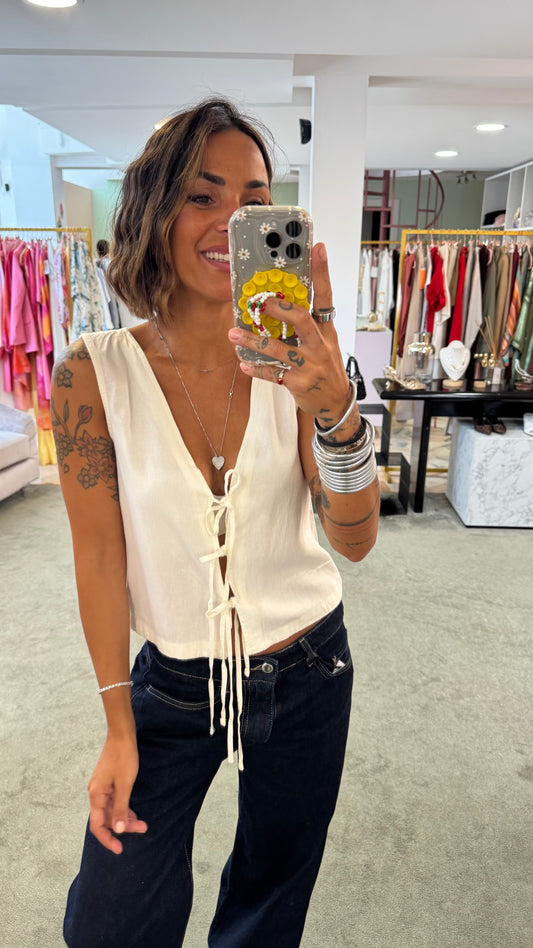 In offertaCanotta gilet panna con lacci davanti jx
