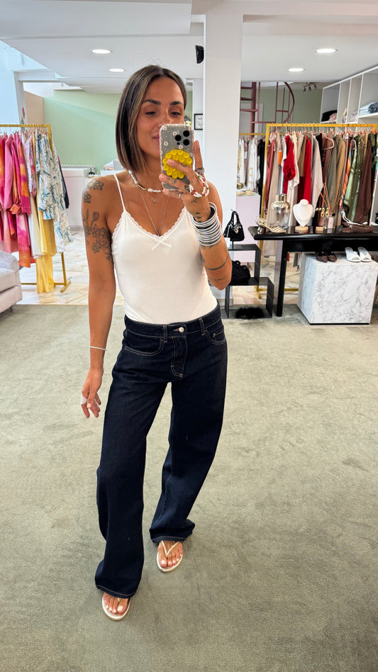 In offertaJeans wide leg denim scuro elasticizzato fr