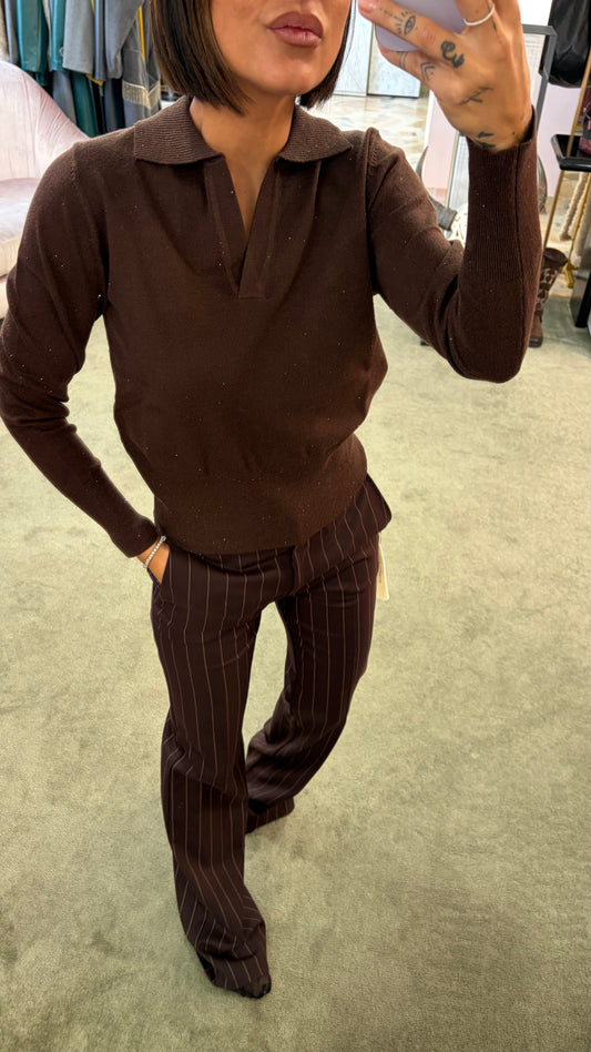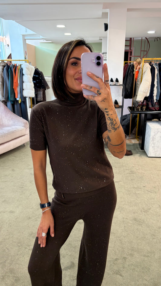 Dolcevita manica corta marrone testa di moro Hinnominate in maglia