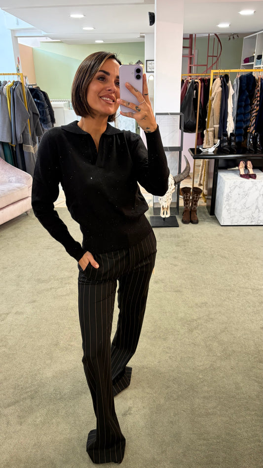 Maglione giacchetta nero in lurex con bottoni oro gl