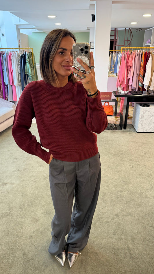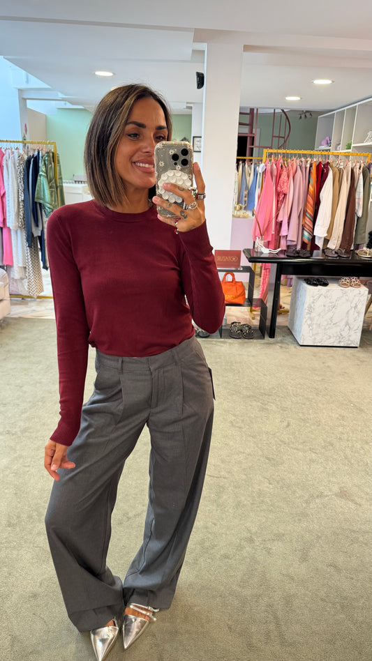 Maglione bordeaux girocollo in viscosa jx