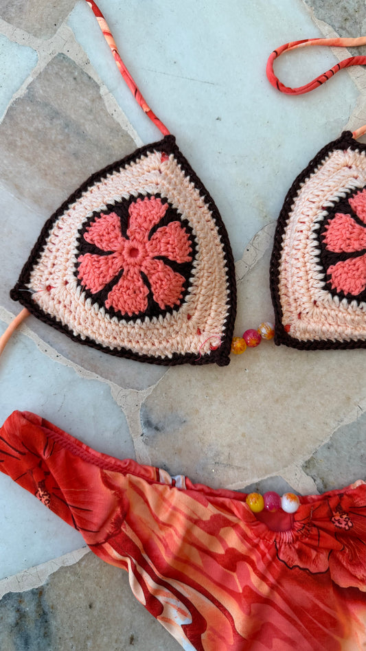 Bikini triangolo bianco con fiorellini purple Me Fui