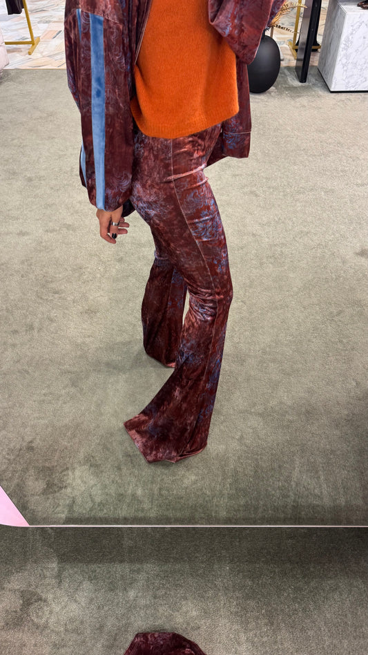 Pantaloni ruggine damascati in ciniglia a zampa ks