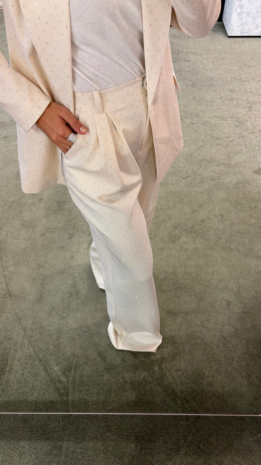 Pantaloni crema in raso crystal wide leg Actualee