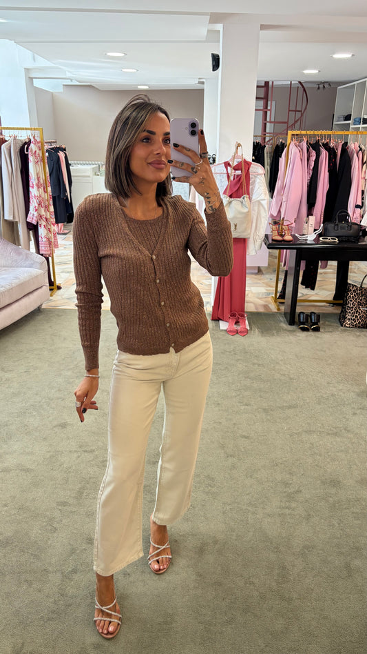Cardigan missoni vibes azzurro e beige manica corta bj