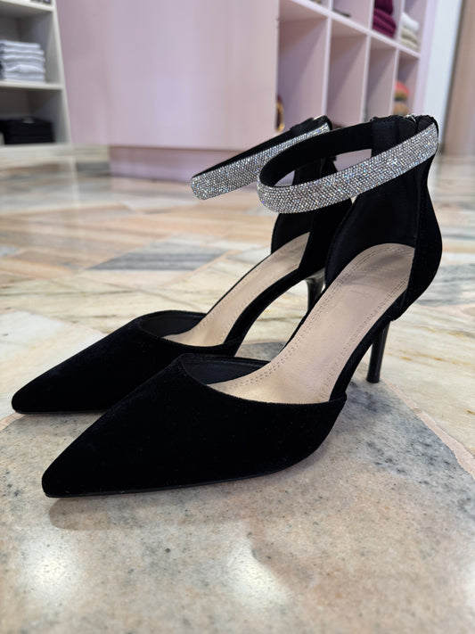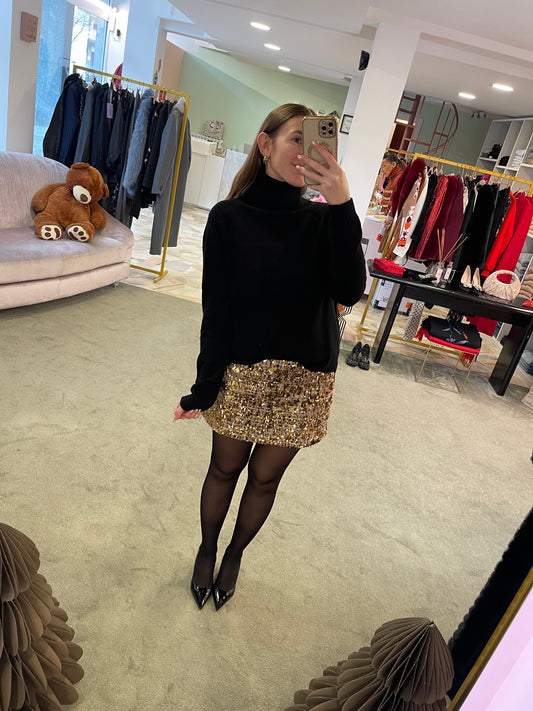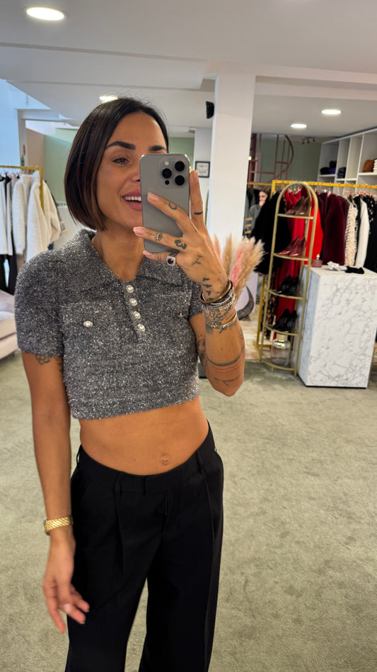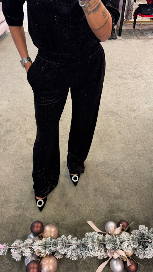 In offertaPantaloni neri glitter in ciniglia a palazzo