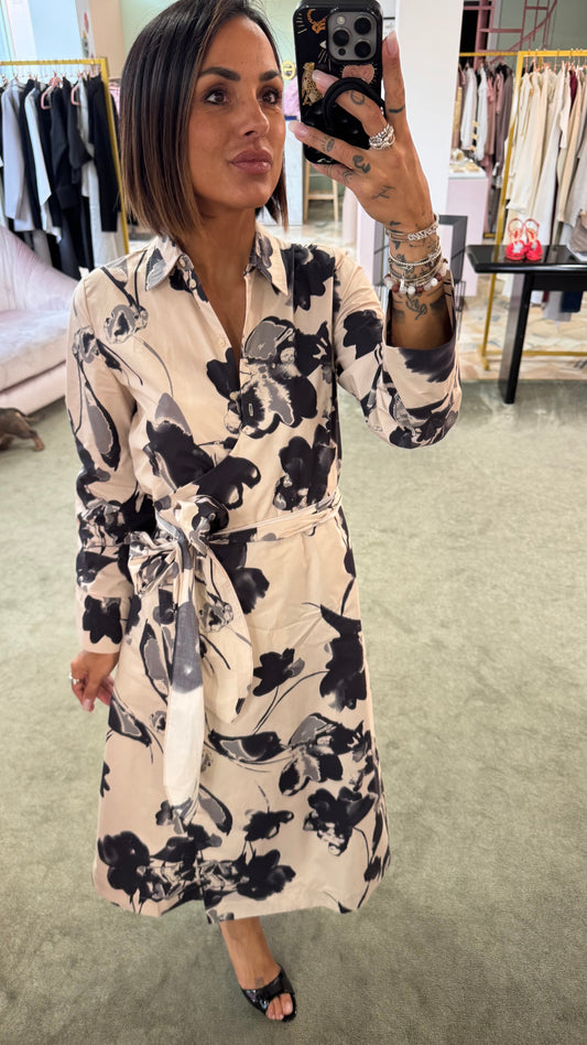 In offertaAbito beige con fiori neri a portafoglio sl