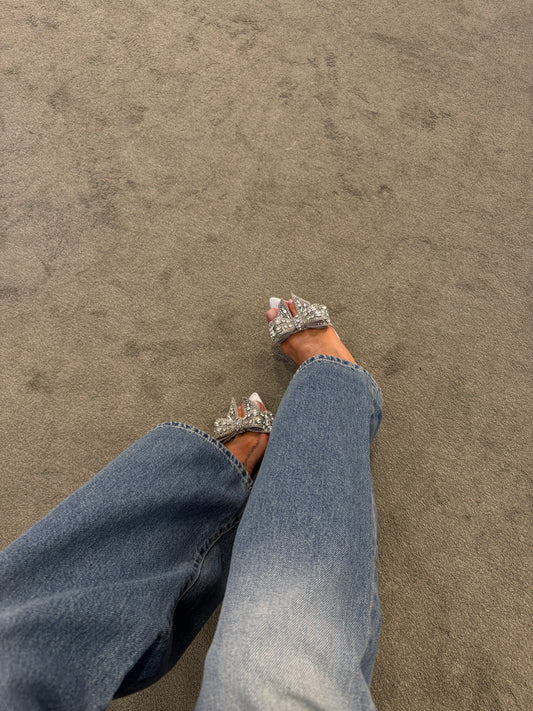 Ciabattina incrociata platino argento cristalli