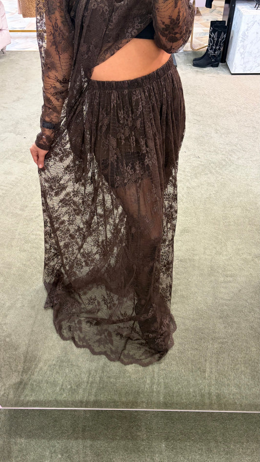 In offertaGonna lunga marrone in pizzo con coulotte mq