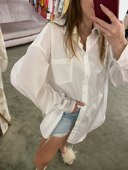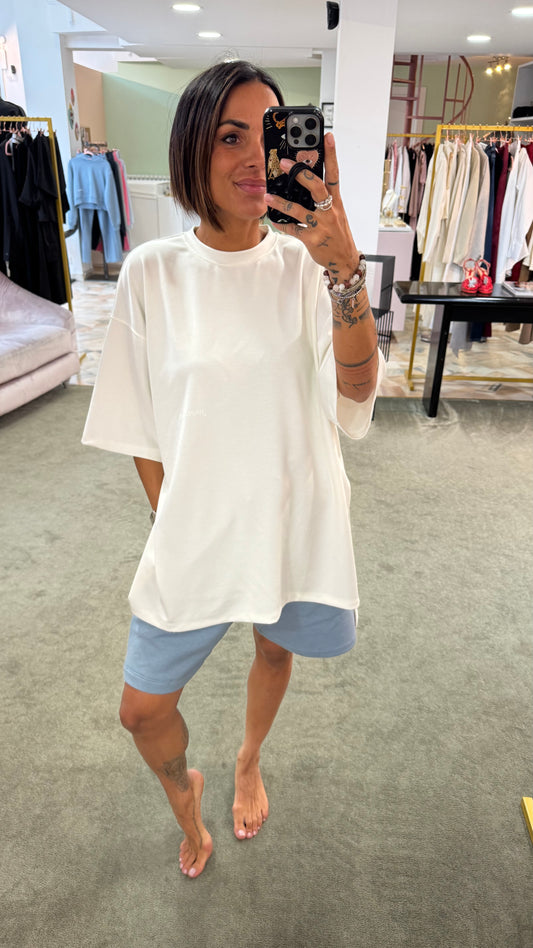 T-shirt bianca panna over in modal con spacchi hinnominate