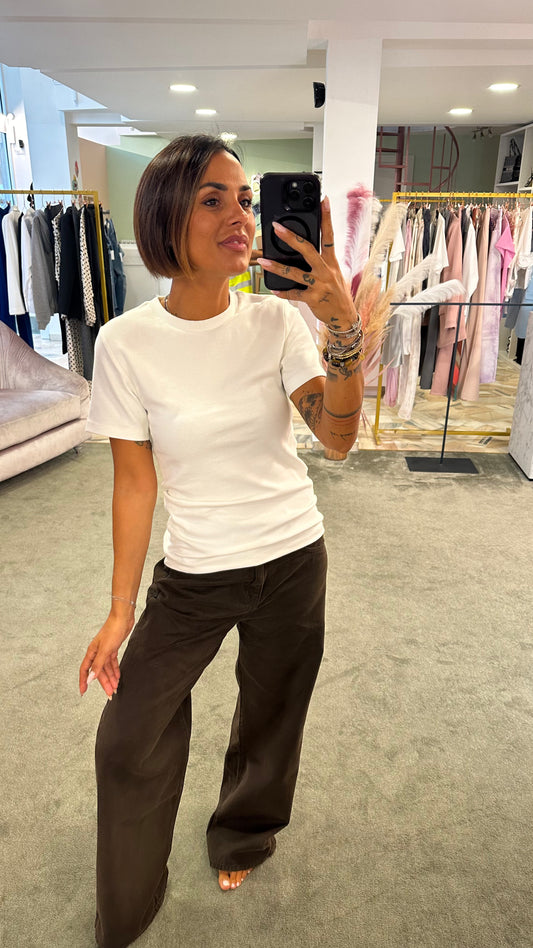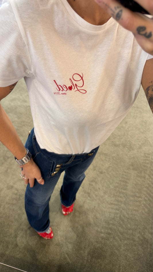 T-shirt bianca panna over in modal con spacchi hinnominate